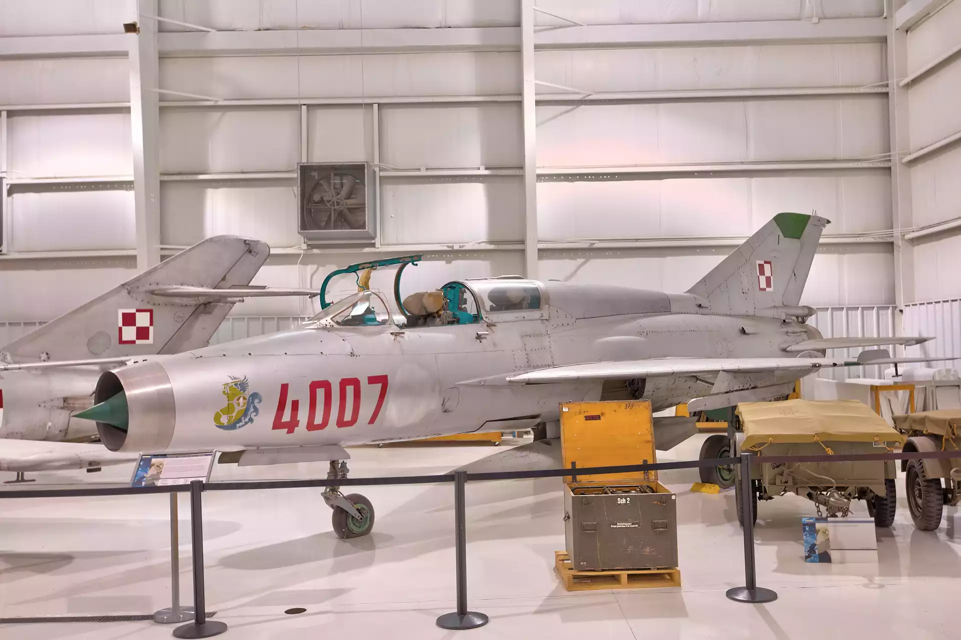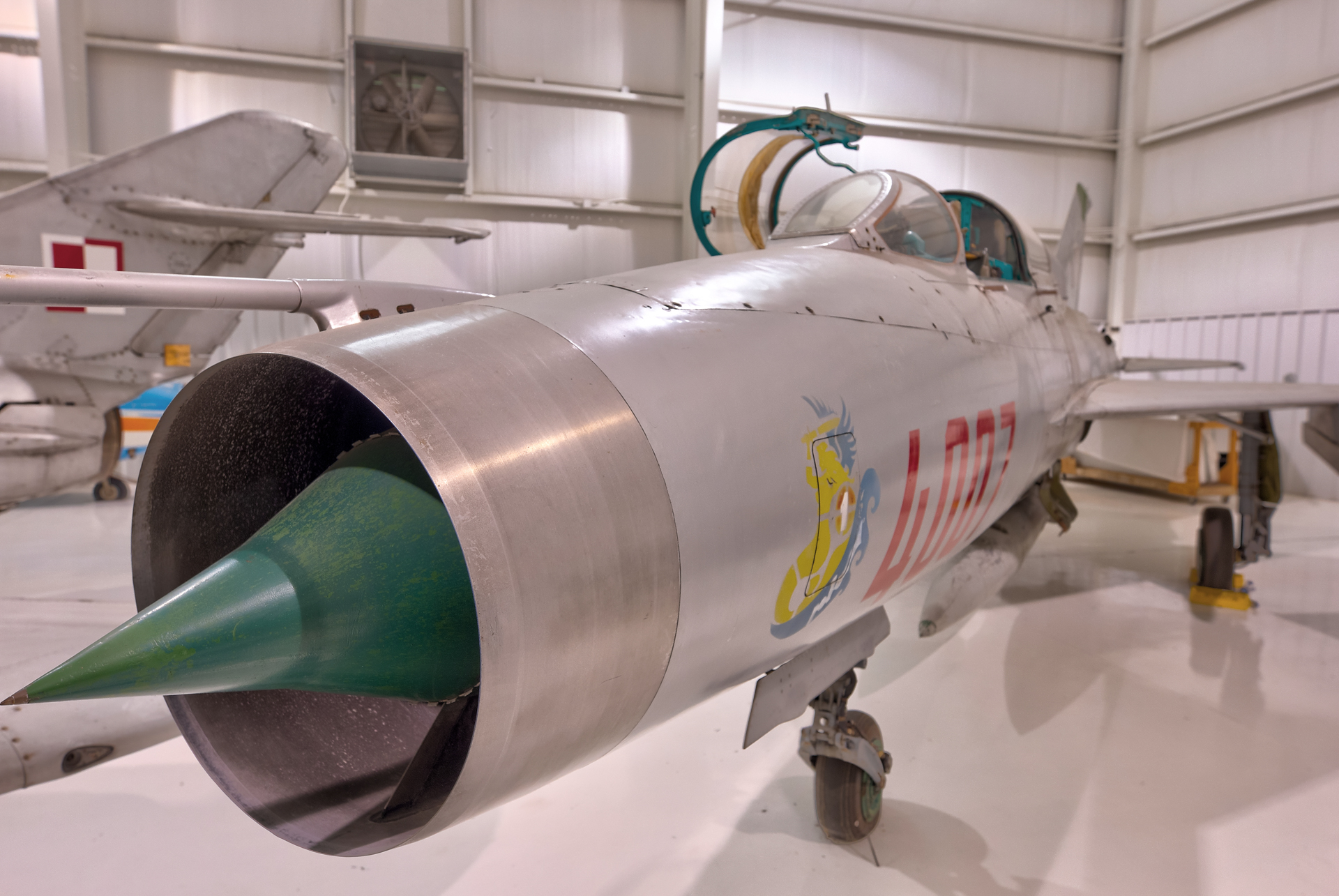 The Mikoyan-Gurevich MiG-21 is a supersonic jet fighter and interceptor aircraft, designed by the Mikoyan-Gurevich Design Bureau in the Soviet Union. Its nicknames include: Balalaika, because its planform resembles the stringed musical instrument of the same name; Ołówek, Polish for “pencil”, due to the shape of its fuselage, and Én Bạc, meaning “Silver Swallow”, in Vietnamese.