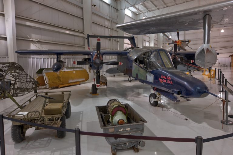 The North American Rockwell OV-10 Bronco is an American twin-turboprop light attack and observation aircraft. It was developed in the 1960s as a special aircraft for counter-insurgency (COIN) combat, and one of its primary missions was as a forward air control (FAC) aircraft. It can carry up to 3,200 lb of external munitions, internal loads such as paratroopers or stretchers, and loiter for three or more hours.